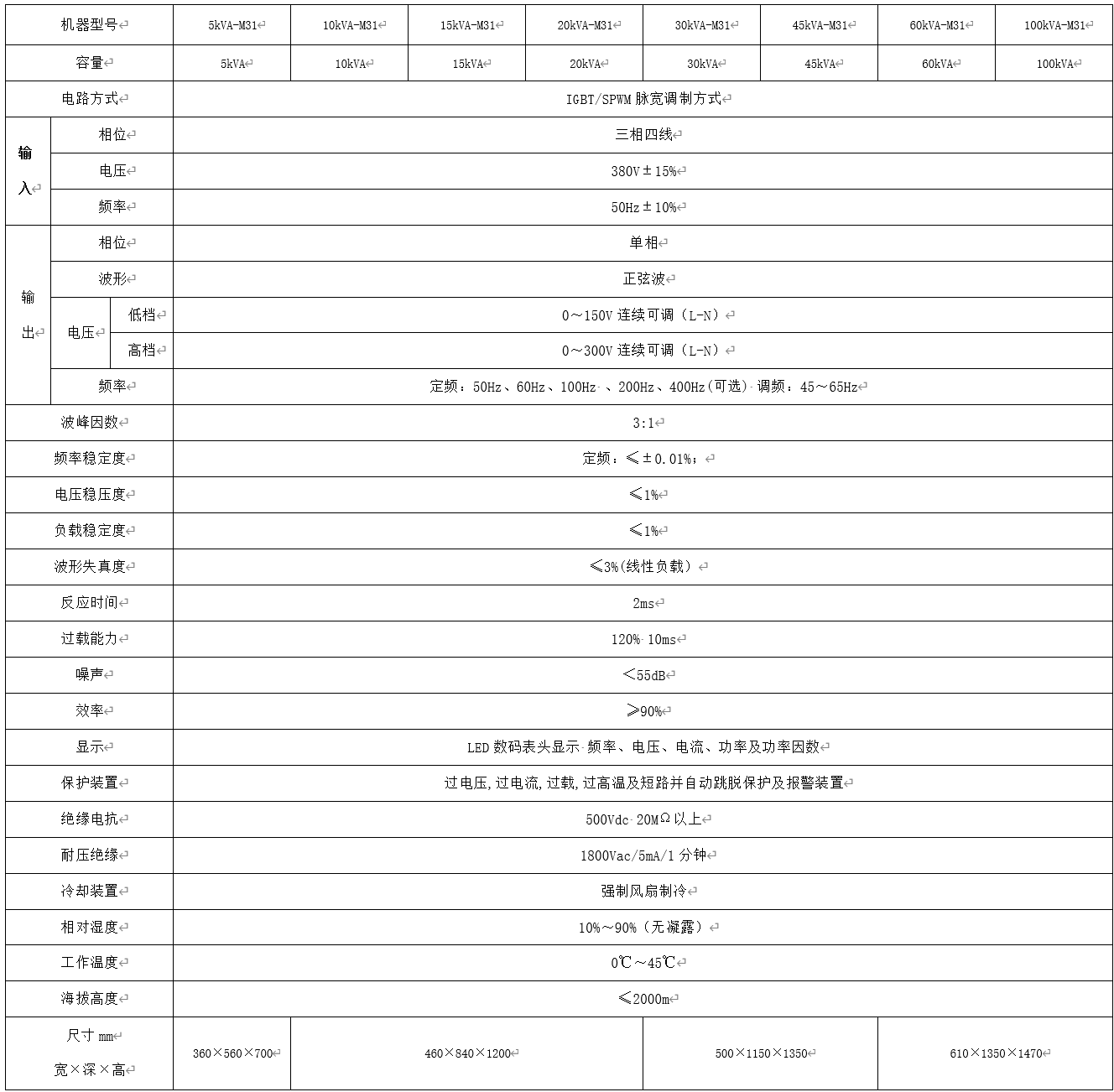 60Hz系列變頻電源三相輸入/三相輸出產品規格說明