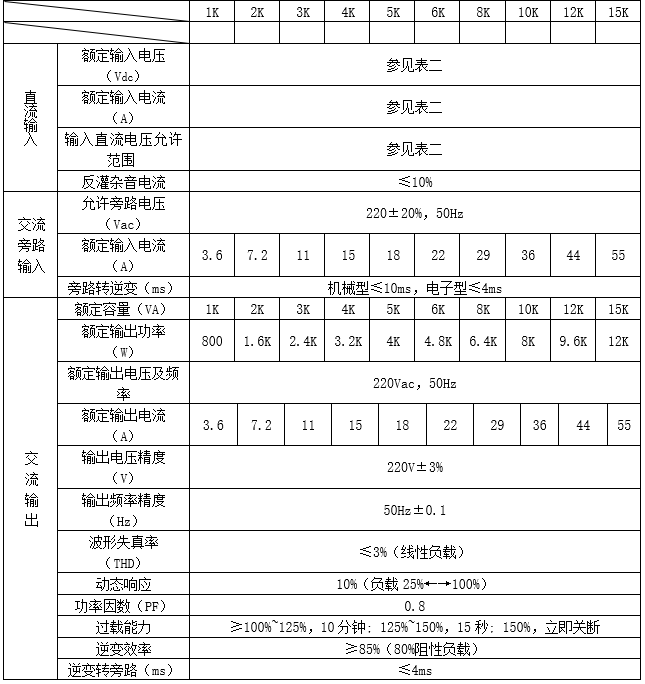 備注:額定輸出功率誤差為:1-6KVA為±100W,8-15KVA±200W